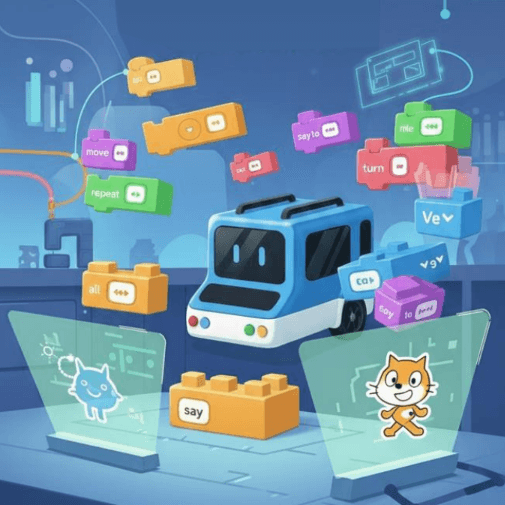 주미 AI에서 태블릿으로 스크래치(블록 코딩) 학습이 가능합니다!